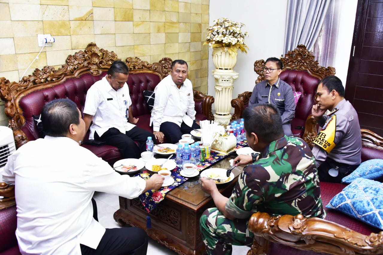 MUARA BASUNG, HUMAS - Sebelum melaksanakan peninjauan pelaksanaan Pemilihan Kepala Desa (Pilkades), Bupati Bengkalis Amril Mukminin menjamu tamu undangan untuk melaksanakan sarapan pagi, Rabu (31/10) pagi, bertempat dikediaman Bupati Amril di Muara Basung.