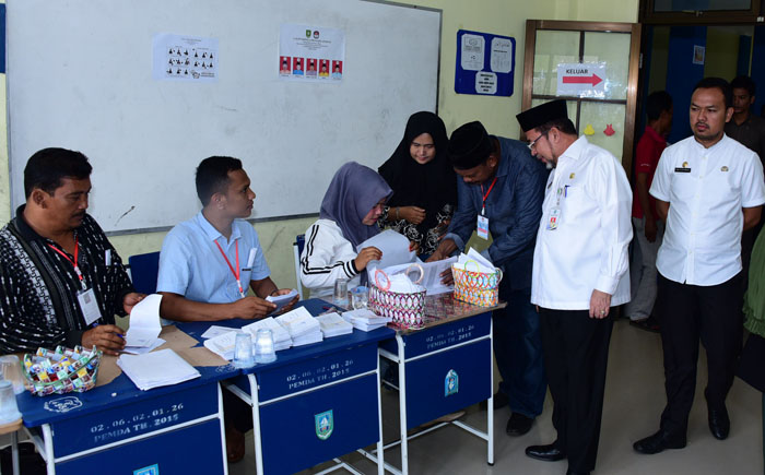 Dari pantauan Tim Peliputan Humas di lapangan, tampak Sekda sedang berdialog dengan petugas Kelompok Penyelenggara Pemungutan Suara (KPPS) dan Panitia Pemungutan Suara (PPS) di Tempat Pemungutan Suara (TPS) yang ada di 4 Desa. Bustami menanyakan tentang bagaimana jalannya pemilihan dan berapa jumlah pemilih yang terdaftar di tiap - tiap TPS serta berapa orang yang telah menggunakan hak pilihnya.