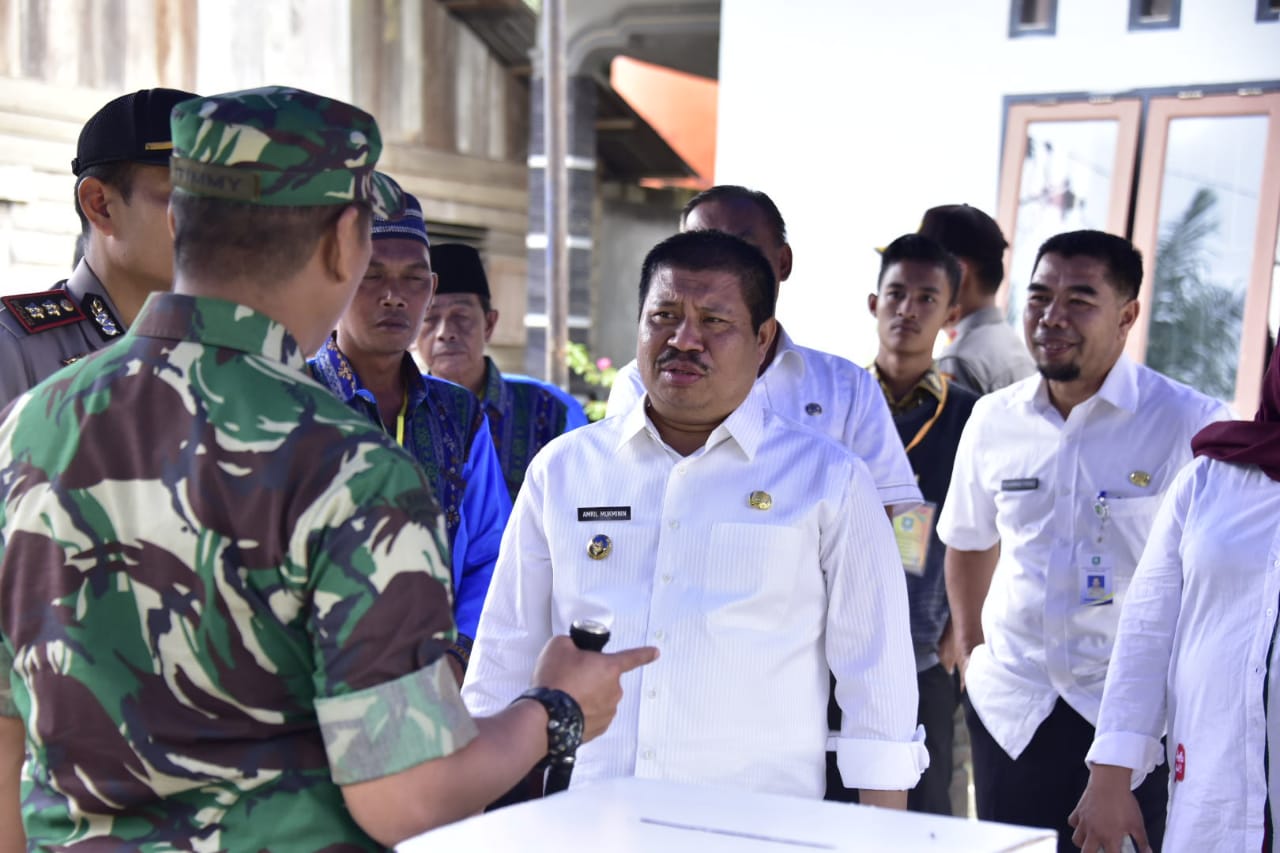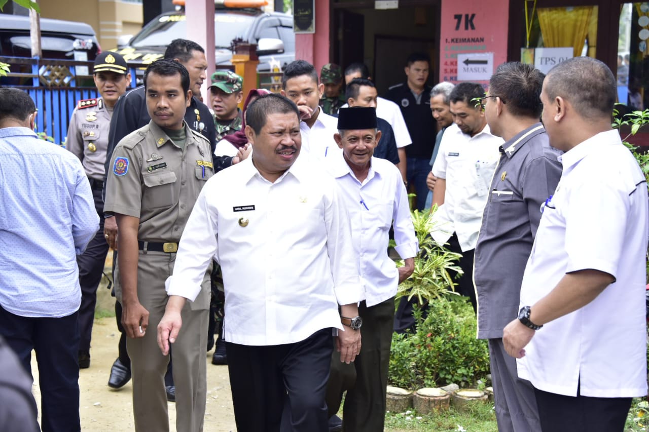 PINGGIR, HUMAS - Untuk memastikan kondusifnya proses pemilihan yang damai dan berjalan dengan tertib, Bupati Bengkalis Amril Mukminin bersama Kapolres Bengkalis AKBP Yusup Rahmanto, Dandim 0303 Bengkalis Letkol Inf. Timmy Prasetyo, Kadis PMD H Yuhelmi, Camat Pinggir Toharuddin dan beberapa orang Kepala OPD, meninjau langsung pelaksanaan Pemilihan Kepala Desa (Pilkades) serentak yang dilaksanakan di Kecamatan Pinggir dan Kecamatan Bathin solapan, Rabu (31/10).