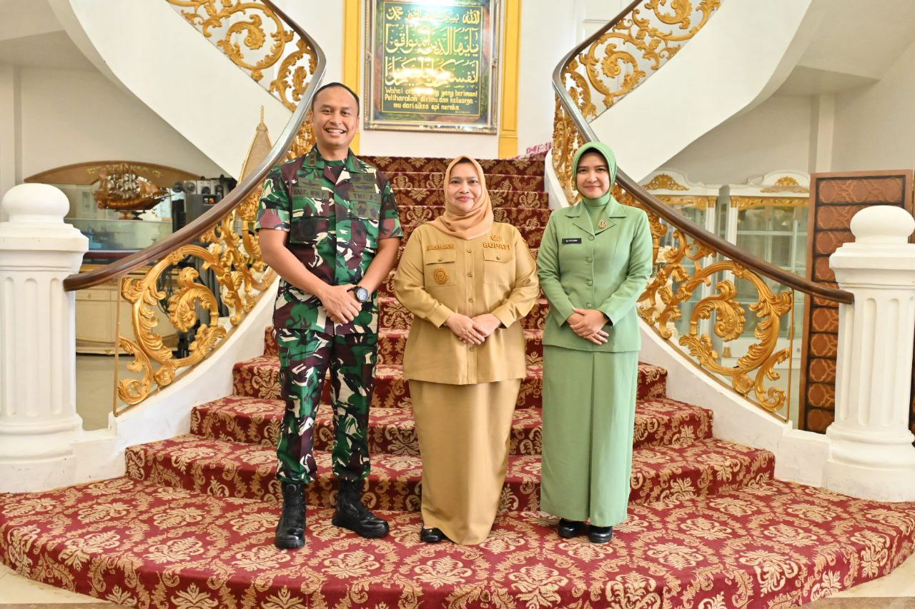 BENGKALIS, PROKOPIM – Bupati Bengkalis, Kasmarni menyambut kedatangan Komandan Kodim (Dandim) 0303 Bengkalis, Letkol Inf Haris N